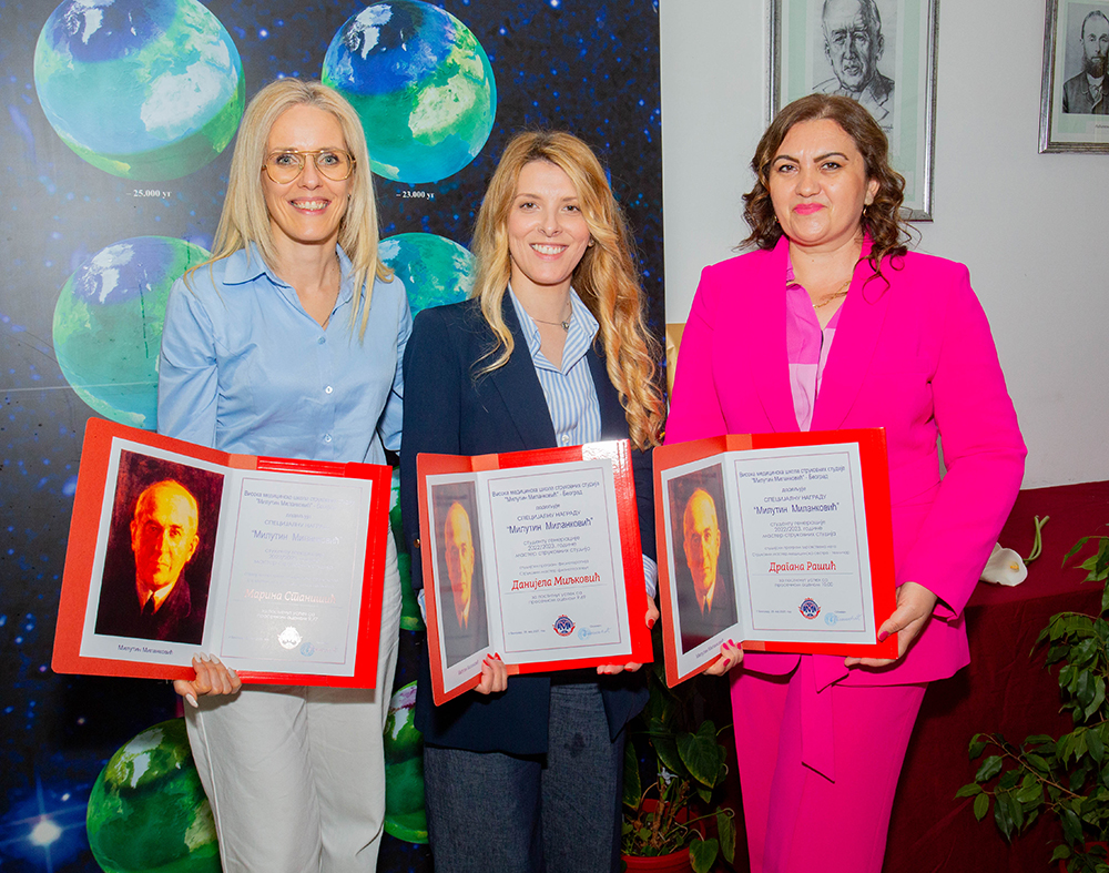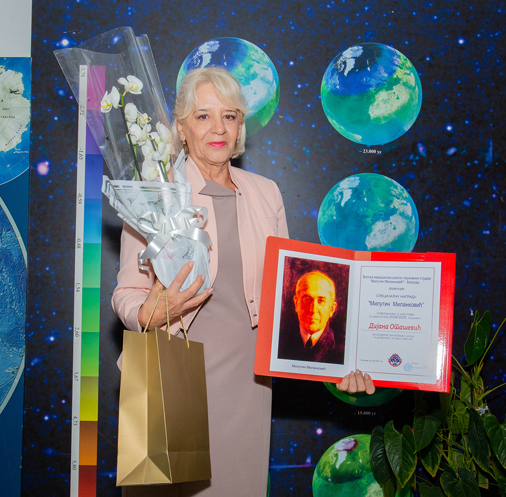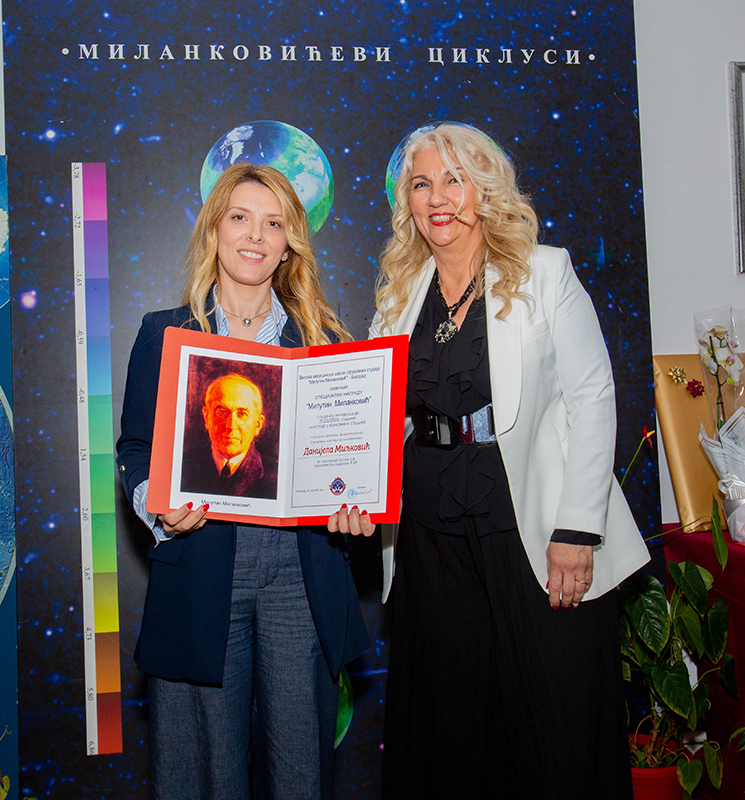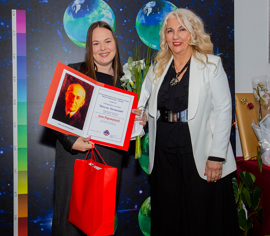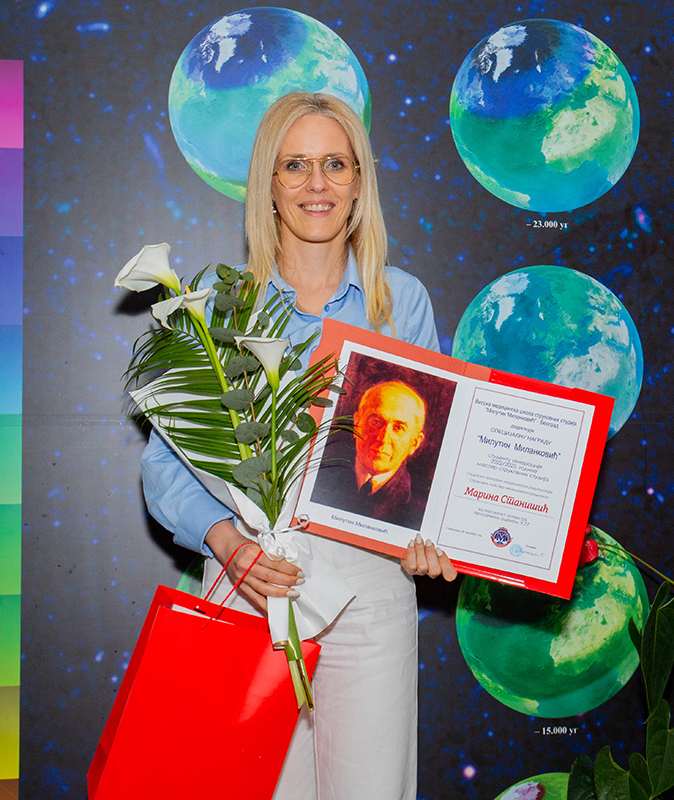 Специјалну награду „Милутин Миланковић“, студенту генерације 2022/2023.године мастер струковних студија, студијски програм физиотерапија, Струковни мастер физиотерапеут, добила је Данијела Миљковић за постигнут успех са проесечном оценом 9,69