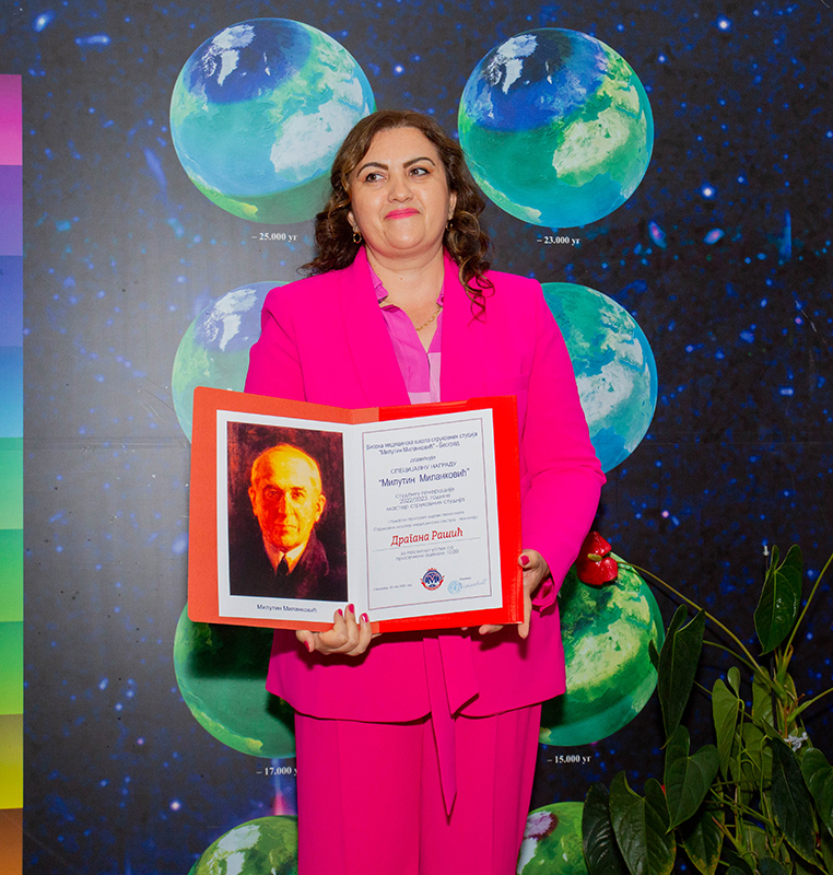 Специјалну награду „Милутин Миланковић“, студенту генерације 2022/2023.године мастер струковних студија, студијски програм здравствена нега, Струковни мастер медицинска сестра-техничар, добила је Драгана Рашић за постигнут успех са просечном оценом 10,00