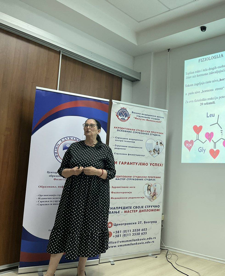 У име наше Школе, присутне је поздравила госпођа Светлана Сентјаков, ПР менаџер, и изразила захвалност што је Школа домаћин наведеног Симпозијума и да се овакав вид пословне сарадње кроз континуиране едукације настави на обострано задовољство.